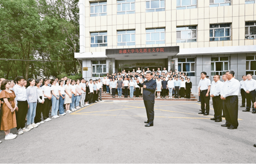 2022年7月12日至15日,中共中央总书记、国家主席、中央军委主席习近平在新疆考察。这是12日下午,习近平在新疆大学考察时,同师生们亲切交流。 新华社记者 李学仁/摄