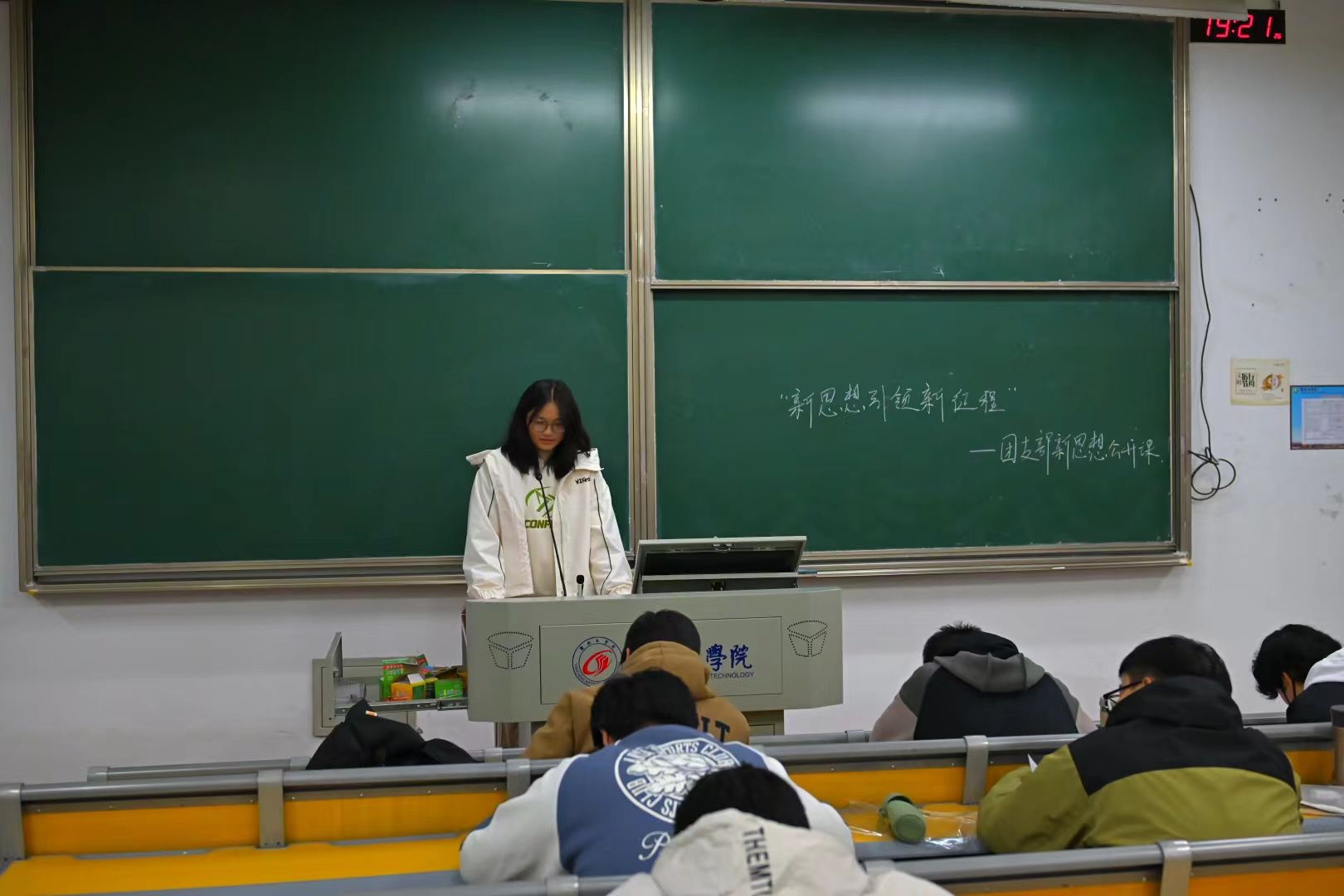 首先,主持人通过PPT展示和生动讲解,带领同学们回顾了新时代中国特色社会主义思想的形成背景、核心内容和重要意义。通过深入浅出的讲解,同学们对新思想有了更加全面和深入的理解,更加坚定了对中国特色社会主义道路的信仰。