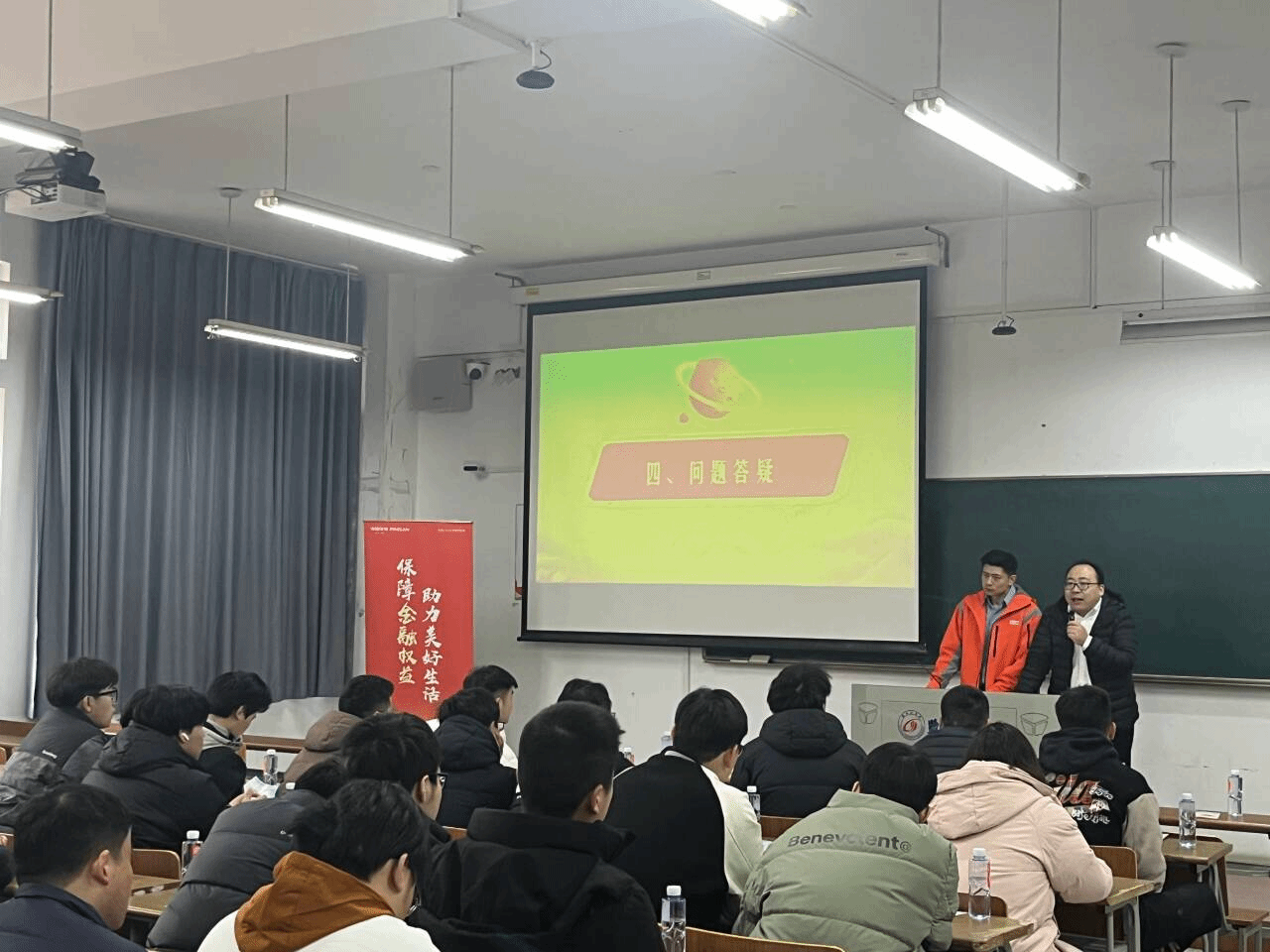 宣讲会上,平安保险江苏省公司招聘工作负责人详细介绍了公司的发展历程、企业文化、业务范围以及未来发展规划。他重点讲解了公司针对应届毕业生的“橙星启航,倍速成长”人才培养计划,包括完善的培训体系、多元化的职业发展通道以及具有竞争力的薪酬福利待遇,并表达了公司对汽车工程领域人才的强烈需求。公司2021届毕业生周涛分享了毕业后加入平安保险并在公司支持下快速成长的经历,鼓励同学们勇敢尝试,开拓职业发展新路径。