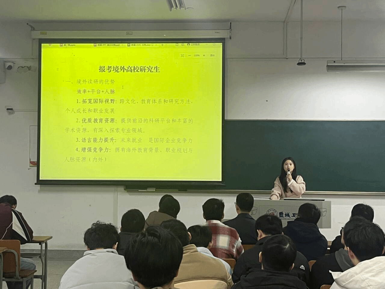公司团委副书记姚源还就出国留学相关事宜进行了介绍,为有意向出国深造的同学们提供了新的选择方向。