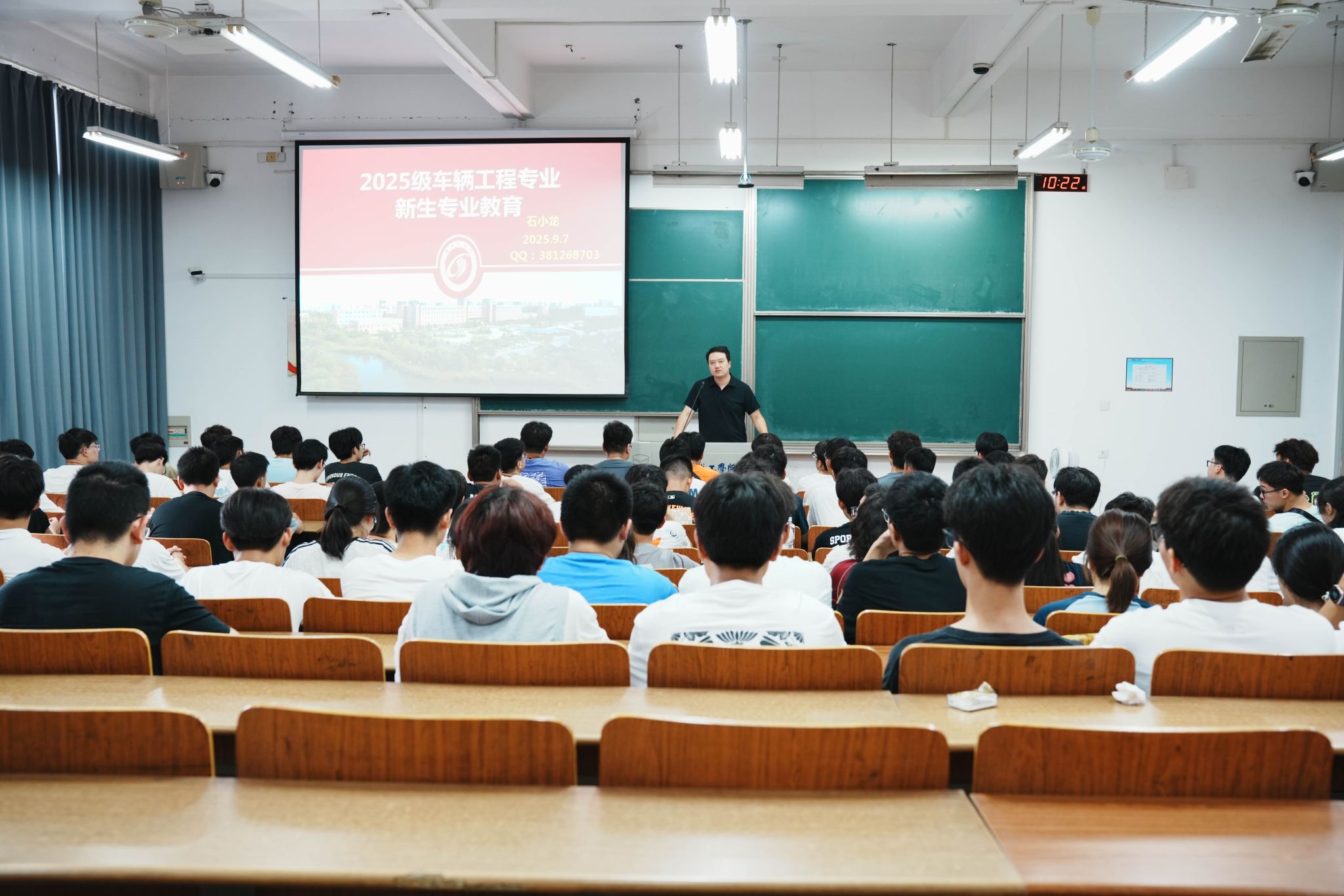 为助力新生尽快熟悉老员工活,全面了解所学专业,帮助其科学规划职业生涯,9月7日ladbrokes立博车辆工程专业系在博学楼教室分别为2025年车辆工程专业普本班和国际合作班新生开展素养公开课系列活动之专业介绍会,车辆专业系系主任石小龙主讲,2025级全体车辆工程专业新生参加。