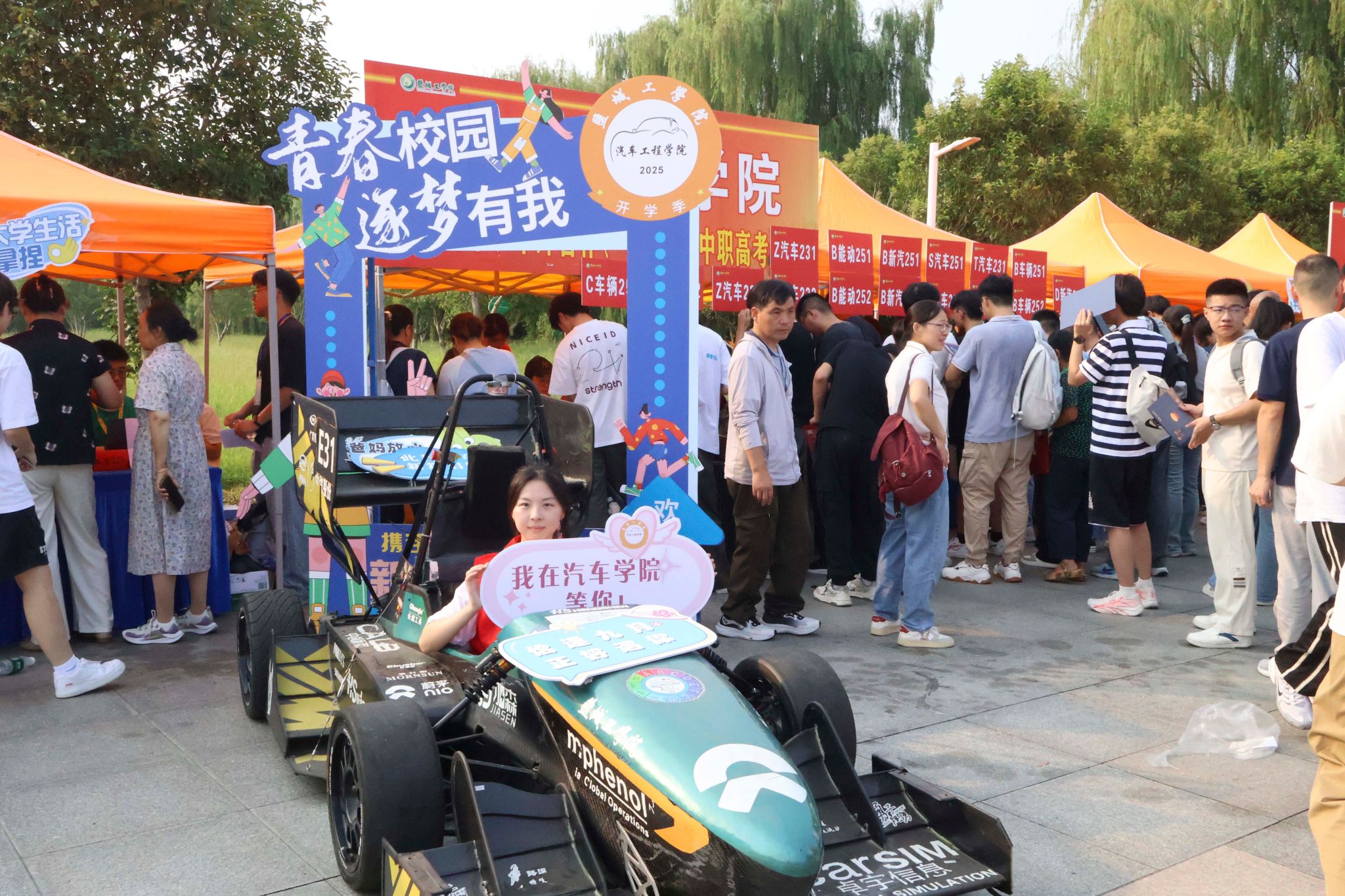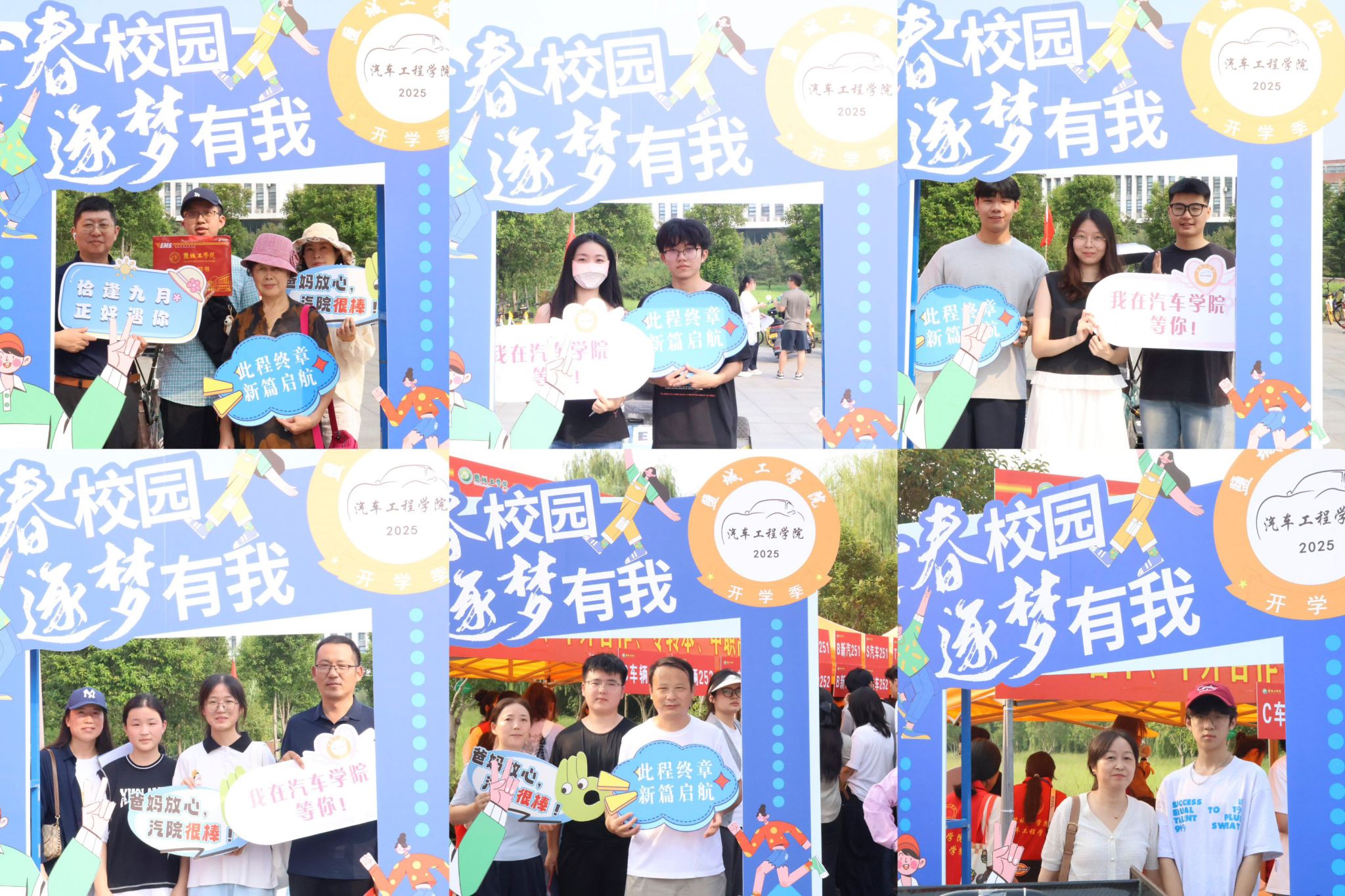 迎新期间,志愿者们各司其职、通力配合,从校门指引到身份核验,从行李搬运到宿舍入住,从政策解答到专业介绍,每一个环节都是井井有条、紧张有序,处处显现志愿者们忙碌而热情的身影。他们用真诚的微笑和耐心的服务,消除了新生初来乍到的陌生与不安,传递了朋辈互助的友爱精神,成为了校园里一道亮丽的风景线。迎新现场设置的野马车队风采展示区、特色打卡点和丰富多彩的迎新标语营造了浓厚且暖心的迎新氛围,家长和新生纷纷驻足打卡合影,记录下这珍贵美好的瞬间。