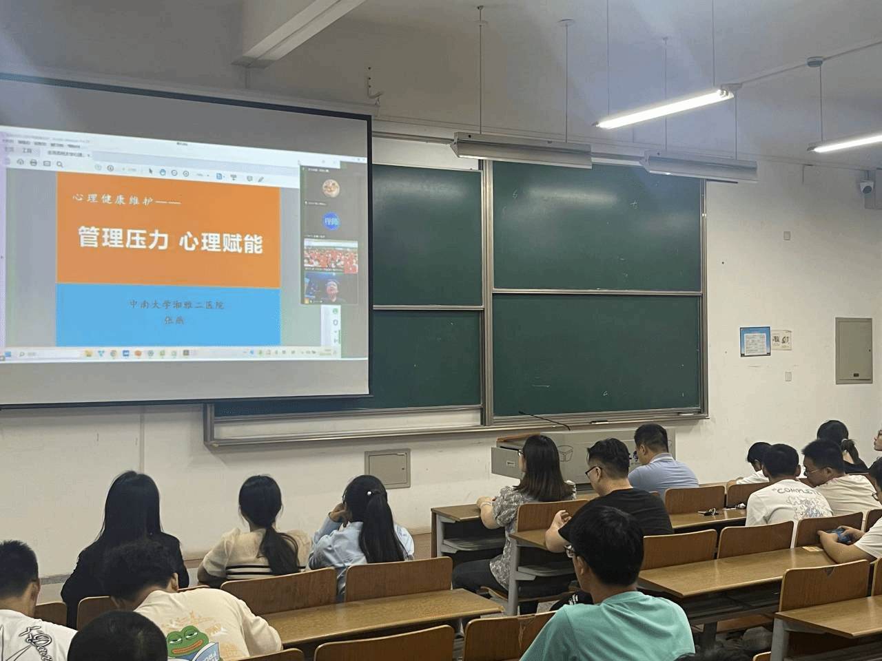 本次讲座通过在线视频的方式观看了中南大学湘雅二医院张燕专家关于“管理压力 心理赋能”的专题讲座,专家提出:一、要学会辨别常见的心理异常问题;二、区分积极压力与消极压力,通过适当的抗压训练锻炼自身心理韧性;三、改变认识事物的方式,通过积极的心理暗示,制定科学的目标管理,做到不求尽如人意,但求问心无愧。通过专家通俗易懂的讲解,员工对心理健康知识以及心理哨兵工作职责也有了更为明确深刻的理解。
