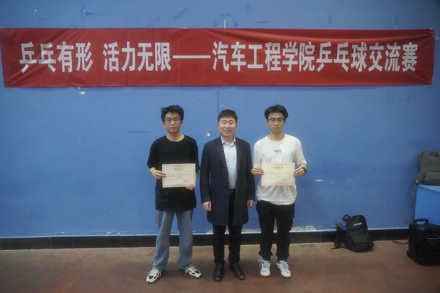 赛场上,选手们斗志昂扬,充分发挥了敢打敢拼的精神,展示了汽车学子积极向上的精神面貌。选手们在比赛中充分展示出娴熟精湛的球技,精彩的旋球,有效的防卫,漂亮的绝杀,速度快、角度准、力度大,屡屡将赛场氛围推向高潮。整场比赛在激情又不失愉悦的气氛中进行。经过激烈角逐,C车辆232班张云天获得单打项目的冠军,B车辆231班曹先垒、邹勇俊获得双打项目的冠军。ladbrokes立博经理助理郑竹安为获奖选手颁奖。