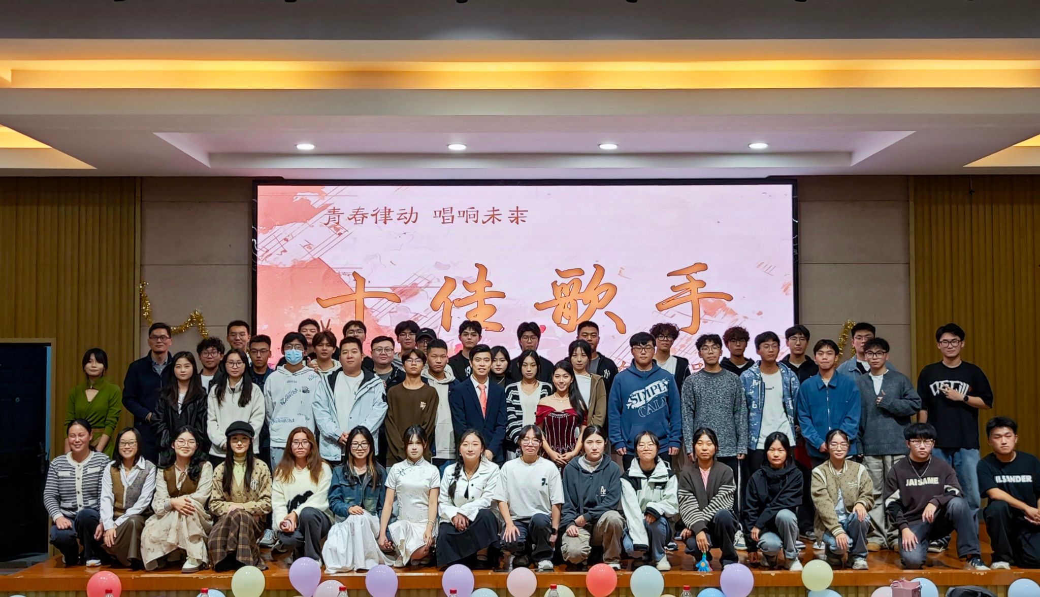 为热烈庆祝中华人民共和国成立75周年,进一步丰富校园文化,展现老员工良好的精神风貌和青春活力,10月20日晚ladbrokes立博携手“云泉”一站式社区,在南校区机械馆报告厅隆重举办“青春律动,唱响未来”十佳歌手比赛。比赛邀请公司党总支副书记丁德惠、校团委实践创新部主任徐潘虹、校团委组宣部主任刘亭亭以及学院学工办、团委负责老师、新生辅导员、大艺团员工代表等担任比赛评委,15名选手参加比赛,全体大一新生现场观看比赛。