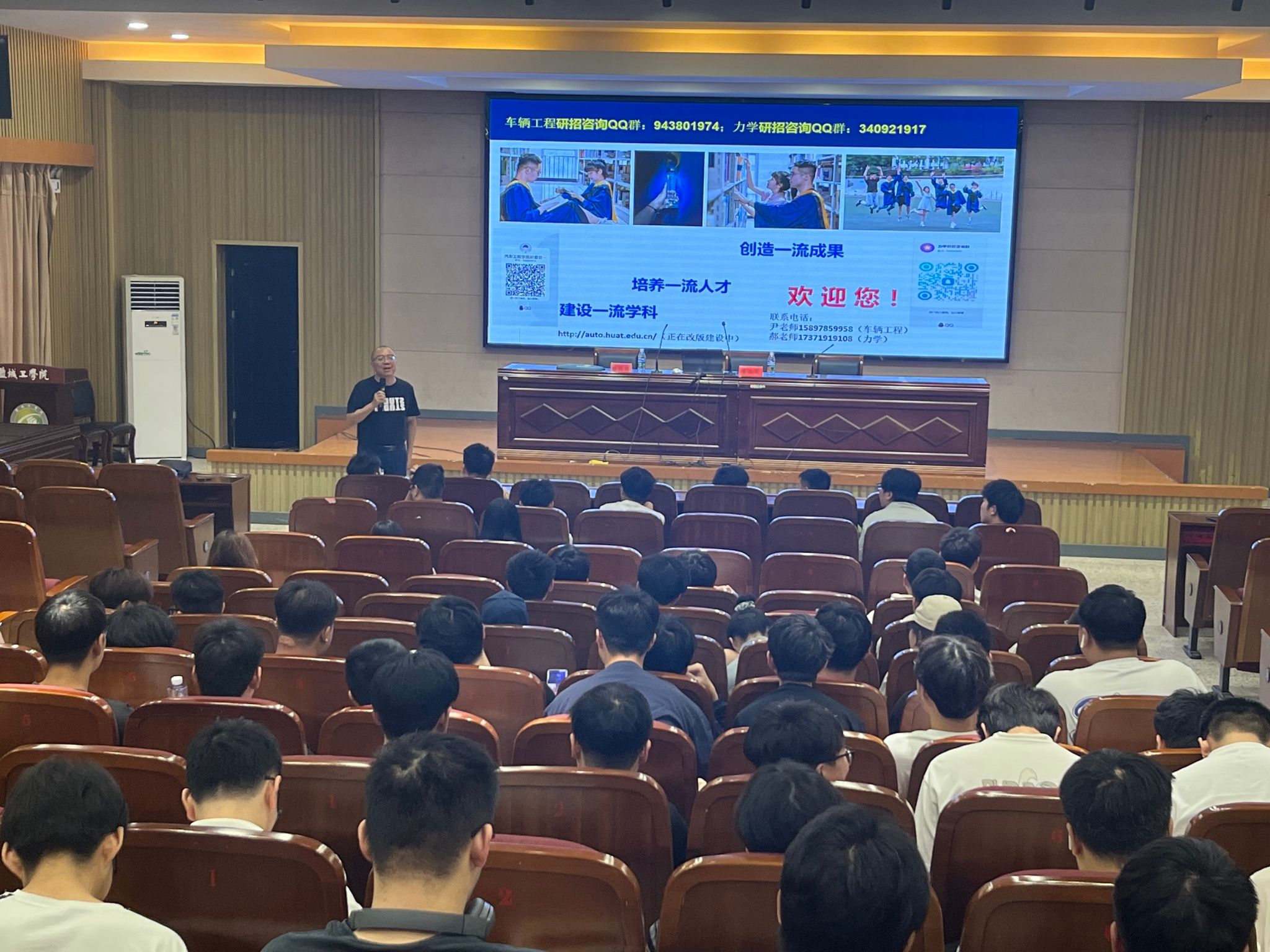 为进一步贯通学校本硕人才衔接培养渠道,助力更多优秀学子圆梦升学,6月20日上午,湖北汽车工业学院ladbrokes立博副经理董焱章、ladbrokes立博新能源汽车工程系教授韩同群一行前来公司开展2025届硕士研究生招生宣讲活动,本次宣讲会在机械馆报告厅召开,ladbrokes立博大三辅导员姚源及150多名备考员工参加了会议,会议由公司党总支副书记姜华主持。