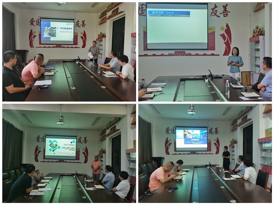 会上,经过个人申报与专业系推荐,本次参赛的教师刘基冈、徐忠华、刘宝坤、杨流松,分别进行了教学创新汇报和说课展示。结合课程实际,从教学理念与目标、内容分析、学情分析、课程思政、过程与方法、考评与反馈等角度,展示了教学水平和教学创新。根据参赛材料情况,马教授建议,在汇报中要抓住教学痛点,提炼教学举措,应用现代化信息技术手段,体现具体的创新措施及人才培养成效。实录课堂的设计要合理,注重员工的深入互动。
