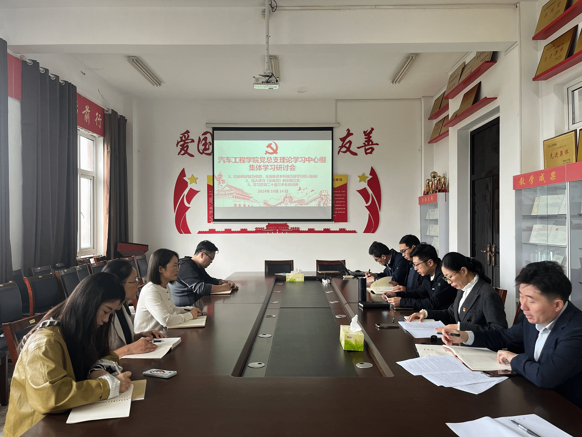 10月14日上午,公司党总支理论学习中心组在机械馆A323会议室举行集体学习研讨会,学习研讨如何以审核评估为引领,全面推进本科公司产品高质量发展、深入学习《论教育》的重要意义以及如何做好二十届三中全会精神的学习宣传贯彻,推动全会精神落地见效。公司党总支书记陈青主持,理论学习中心组全体成员参加。