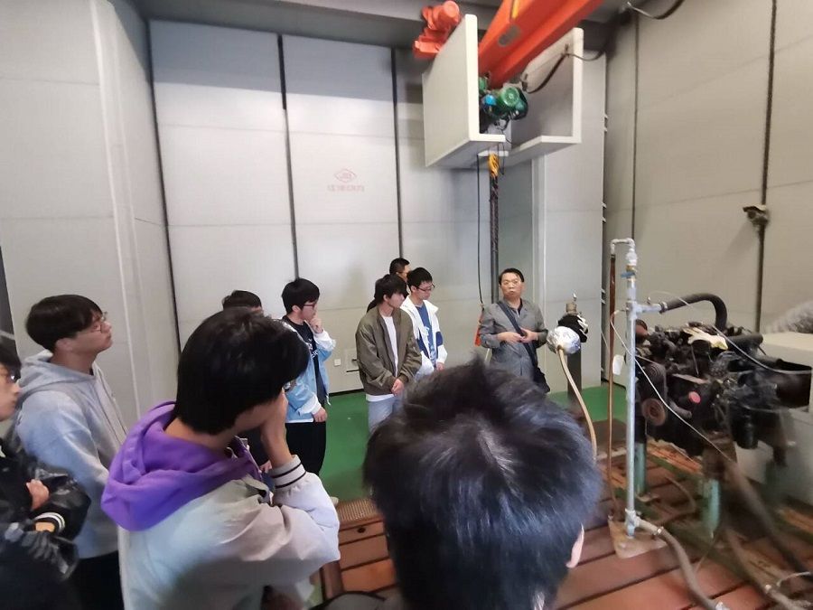 在参观完生产车间后,同学们在工作人员的带领下来到了企业的实验室,走进实验室之前同学们便在工作人员口中得知该实验室是CNAS认可实验室,满足《检测和校准实验室能力的通用要求》。工作人员对于实验室中的仪器和设备做出了详细的讲解,重点介绍了柴油机排放标准测试室和噪音实验室,同时在企业老师的指导下同学们完成了美国EPA标准下的通用汽油机六工况排放试验。通过本次实践,同学们对本专业有了进一步的了解,深入认识到了内燃机发展过程的艰辛,并明确了未来学习方向和奋斗目标。