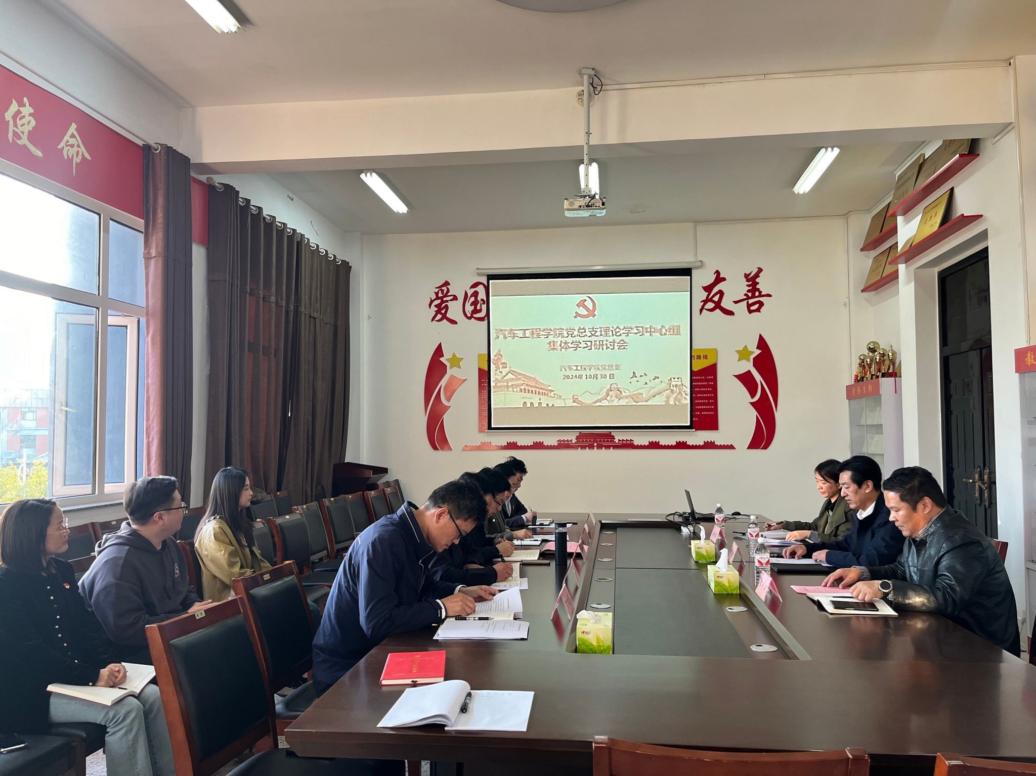 10月30日下午,公司党总支理论学习中心组在机械馆A323会议室举行集体学习研讨会,学习研讨习近平总书记关于教育的重要论述、党中央和省委关于应用型本科高校建设的决策部署以及习近平总书记关于党的自我革命的重要思想。