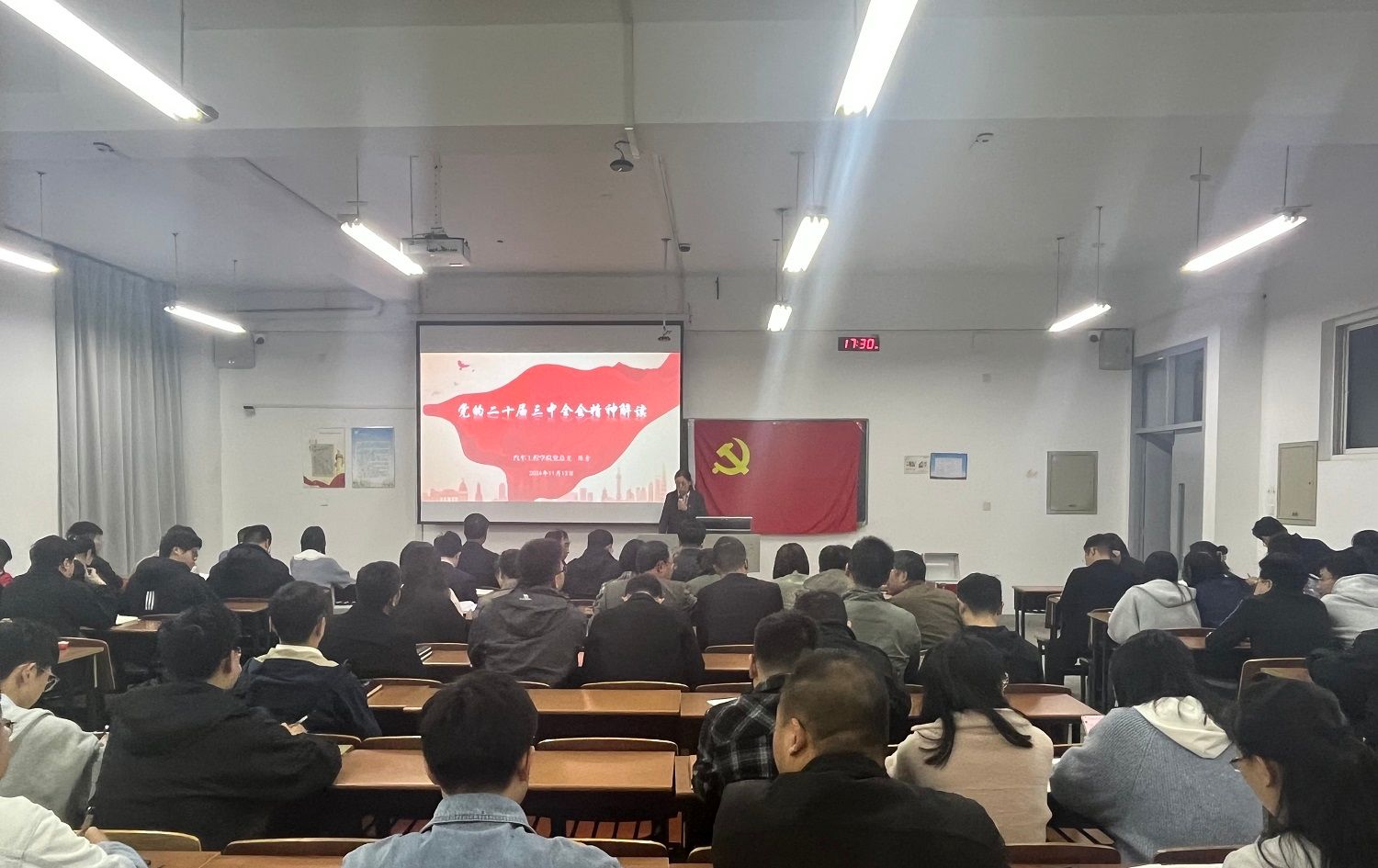 为深入贯彻落实党的二十届三中全会精神,切实将习近平新时代中国特色社会主义思想铸魂育人落到实处,11月13日下午,ladbrokes立博党总支在南校区博学楼A402教室召开学习贯彻二十届三中全会精神专题党课,公司党总支书记陈青作《党的二十届三中全会精神解读》的专题党课,公司党总支副书记丁德惠主持,学院全体党员参加学习。