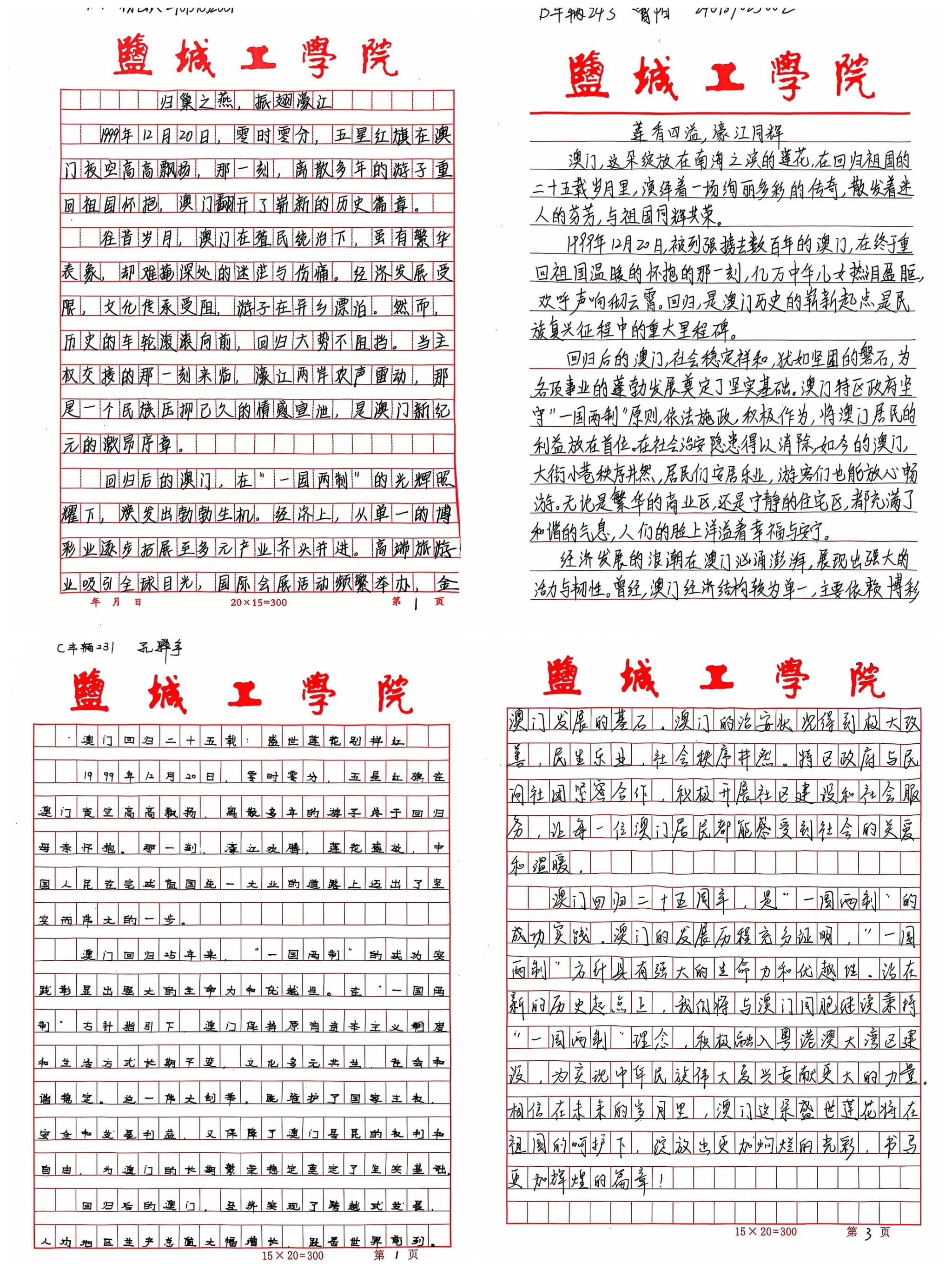 员工以笔为媒,以思启智,书写澳门回归以来的深刻变化和发展以及个人成长与祖国共同进步的点滴,展现了汽院学子的家国情怀,反映了汽院学子对历史的深刻理解和对祖国未来的美好憧憬,激励了汽院员工学习本领、贡献力量的信心与决心,进一步增强了汽院学子对祖国的认同感、自豪感。