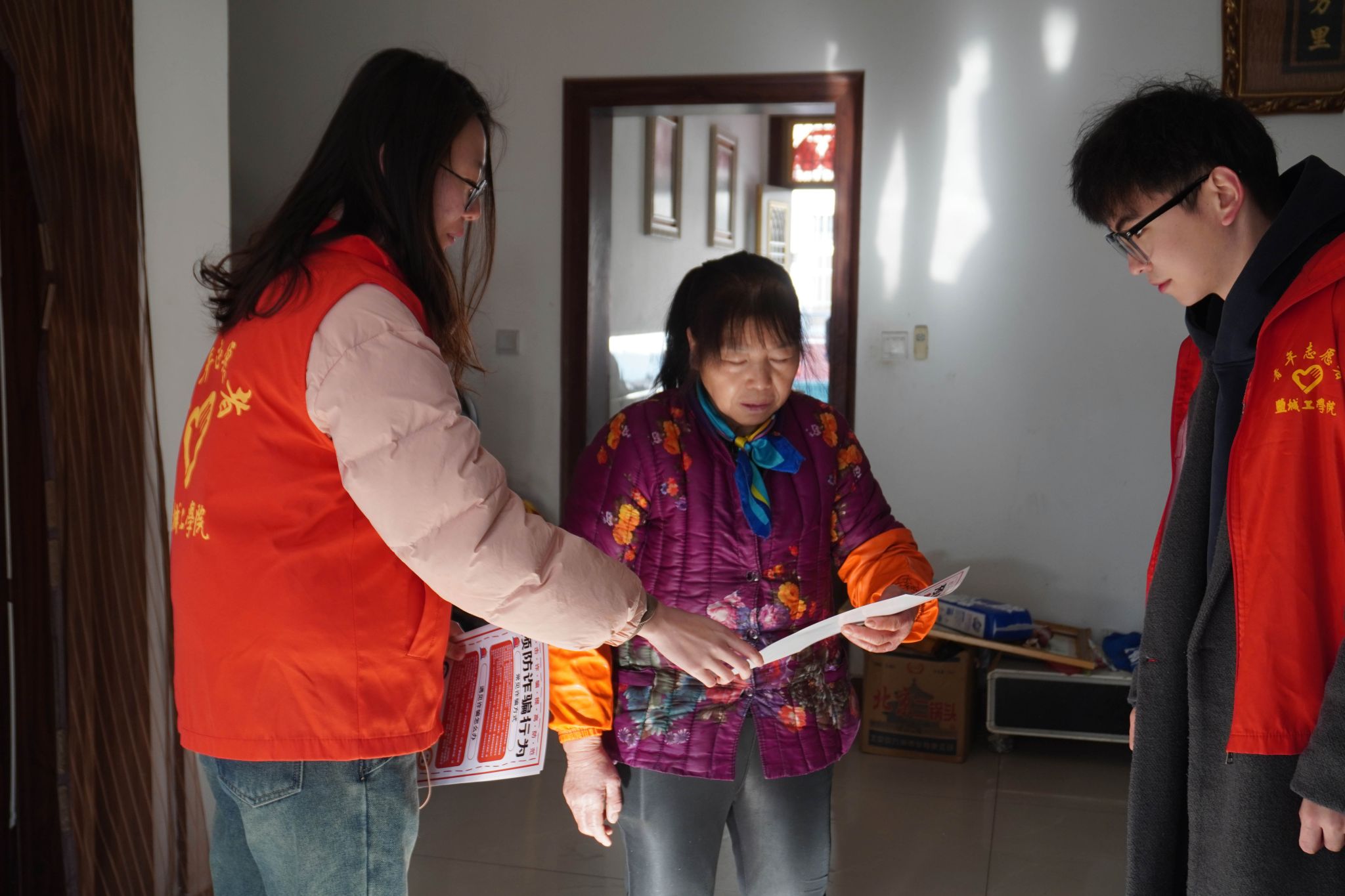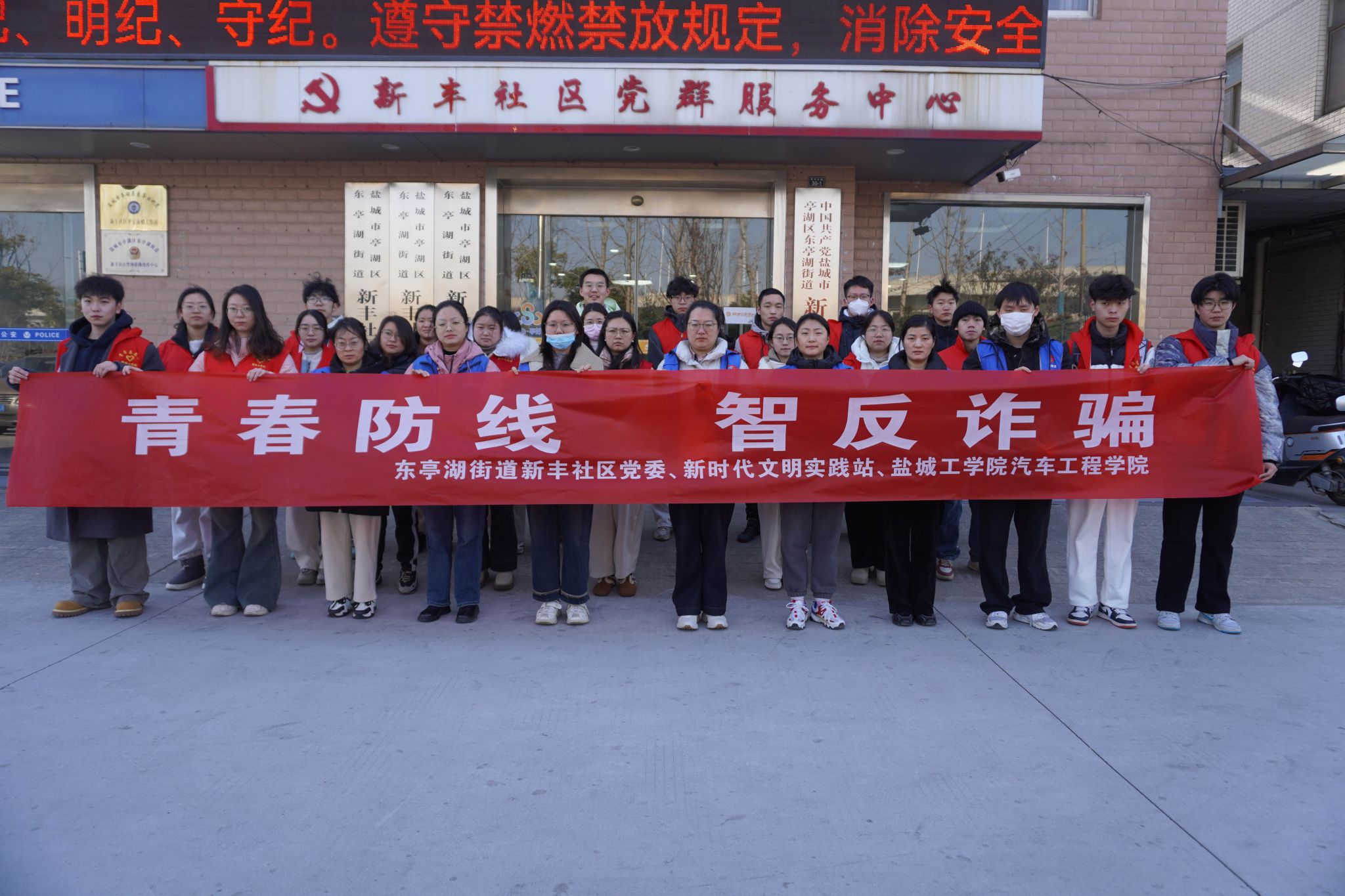 为响应国家加强防范电信网络诈骗的号召,增强社区居民的防骗意识,构建更加安全的社区环境,1月8日ladbrokes立博团委联合亭湖区东亭湖街道新时代文明实践所、新丰社区网格中心,在新丰社区10个居民小区开展“青春防线 智反诈骗”的“返家乡”社会实践志愿活动。ladbrokes立博团委副书记姚源、专职辅导员孙雅以及二十余名盐城籍员工参加活动。