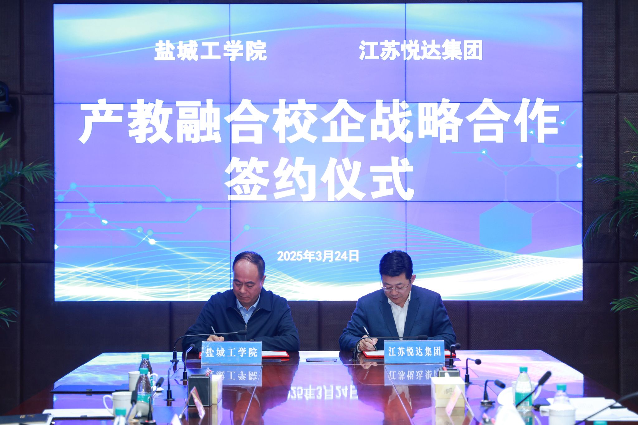 3月24日,公司与江苏悦达集团产教融合校企战略合作签约仪式在江苏悦达集团总部举行。双方将围绕校企合作基地建设、科研团队共建、产业技术研发等领域开展深度合作。董事长、党委副书记邵荣,江苏悦达集团党委书记、董事长张乃文出席活动并致辞。江苏悦达集团党委副书记、总经理徐海宁主持。