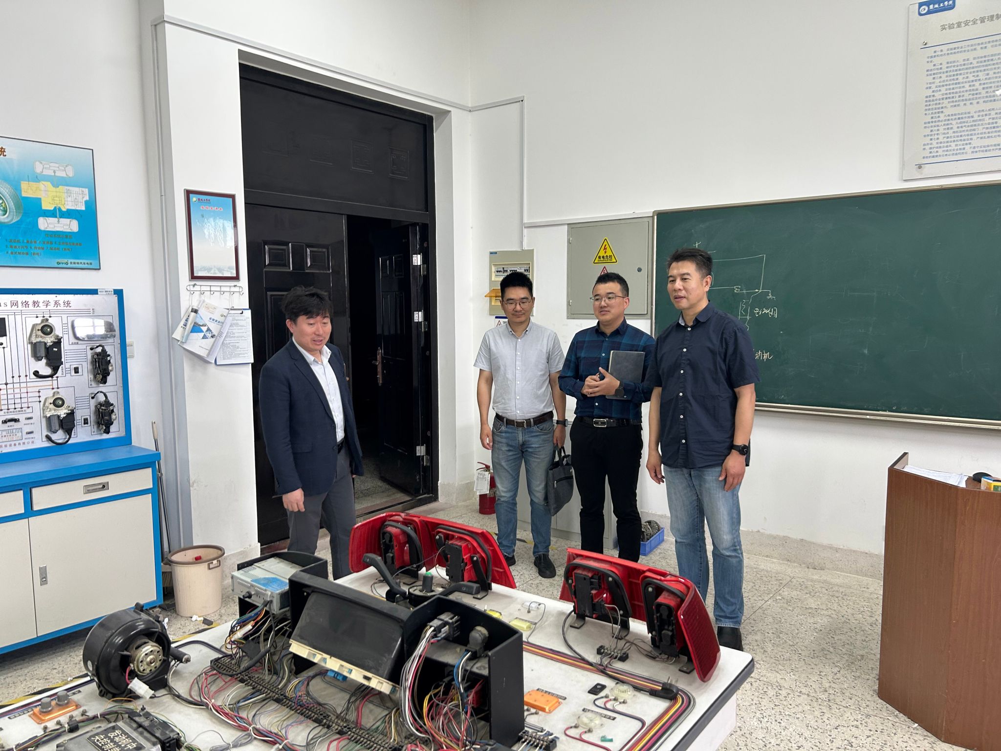姚层林经理详细介绍了武汉商学院机电工程学院的发展历程及规划,并介绍新能源汽车工程专业建设方面的总体思路、改革举措。他指出,新能源汽车产业是国家战略性新兴产业,专业人才培养须紧贴行业发展需求,不断推进课程内容与岗位能力对接,强化多维度协同育人机制。他表示,希望今后双方能够持续深化合作,共同推动新能源汽车工程专业高质量发展。随后,姚经理一行参观了公司智能网联实验室。