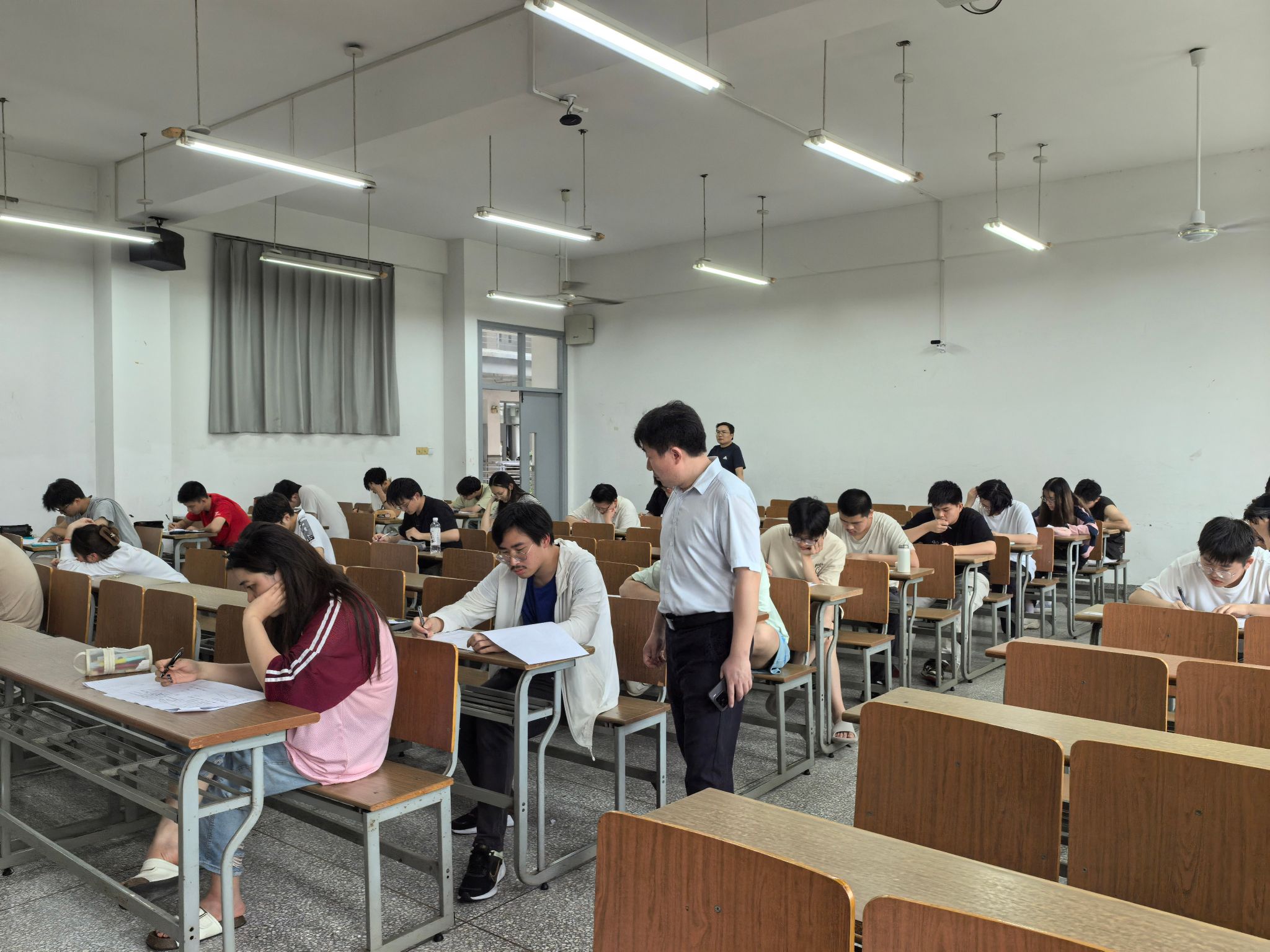 院领导高度重视考风考纪问题,多次走进考场进行检查。考场上,监考老师严格按照监考规范加强巡视,员工们严格遵循考场要求,专心答题。与此同时,院领导们细致观察监考过程与考场氛围,并就巡考过程中所发现的问题,与监考老师进行了交流,考察考风考纪整肃行动的执行效果有了进一步地提升。