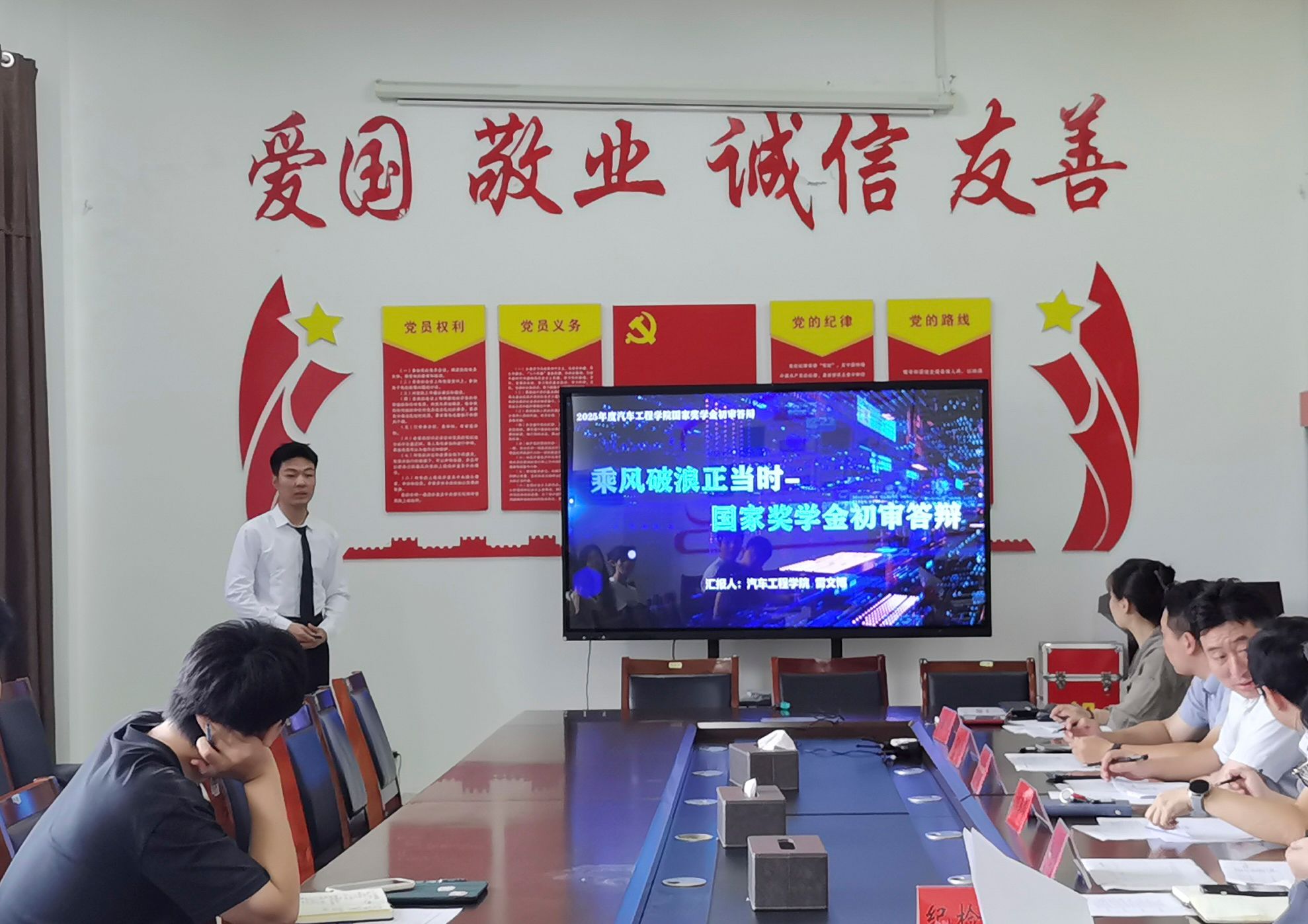 为扎实做好国家奖学金评选工作,进一步推进学院学风建设,发挥好优秀学子的榜样作用,9月28日,ladbrokes立博在南校区机械馆A323会议室举行2024-2025学年本科生国家奖学金答辩评审会。评审委员会由ladbrokes立博副经理郑竹安及专业系、学工办、团委负责人等五人担任评委,公司党总支副书记丁德惠全程参与并对答辩评审进行监督。
