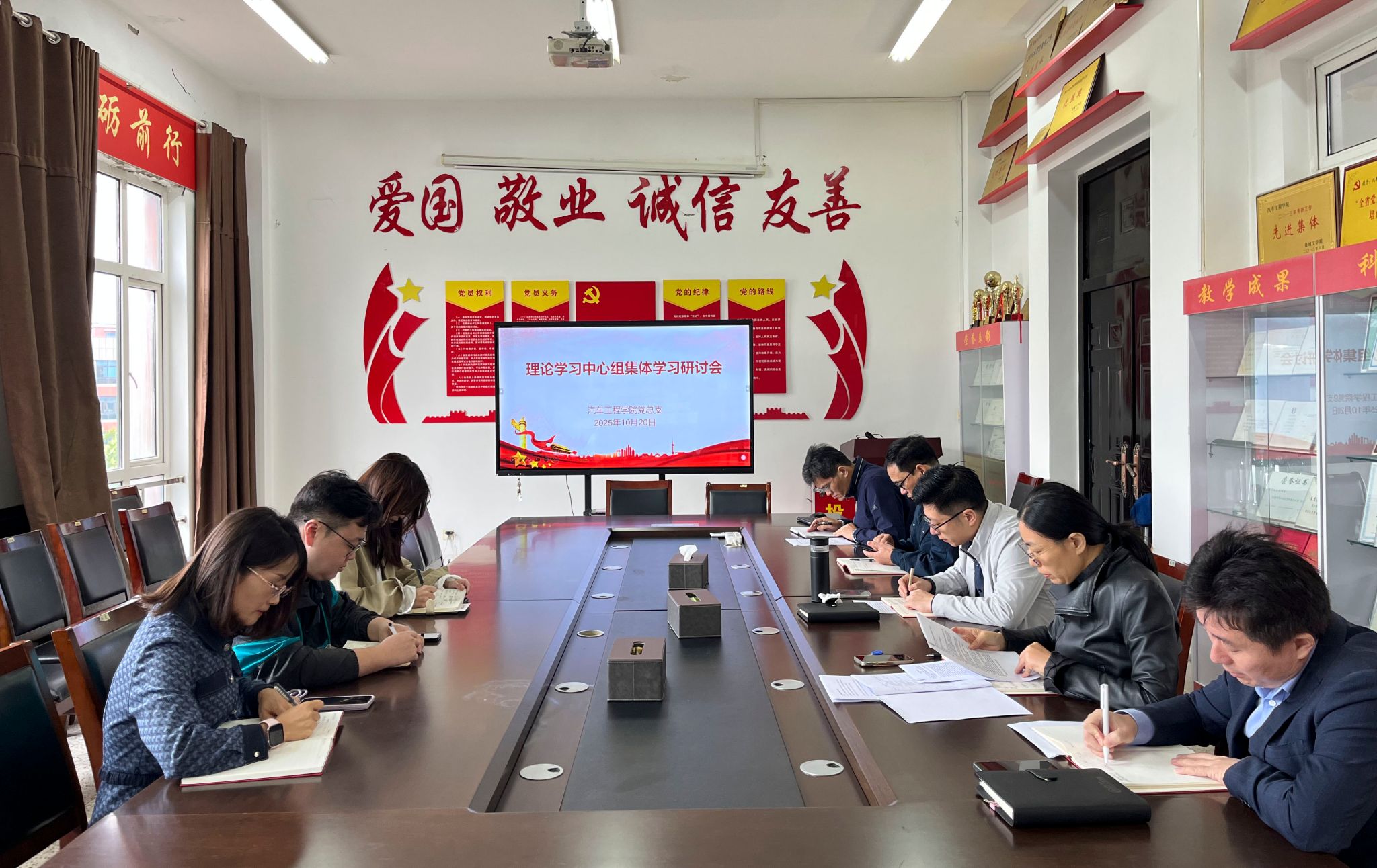 10月20日上午,公司党总支理论学习中心组在机械馆A323会议室举行2025年秋学期第二次集体学习研讨会,学习习近平总书记在纪念中国人民抗日战争暨世界反法西斯战争胜利80周年大会上的重要讲话精神、习近平总书记重要文章《健全全面从严治党体系》,党总支书记陈青主持,党总支理论学习中心成员参加。