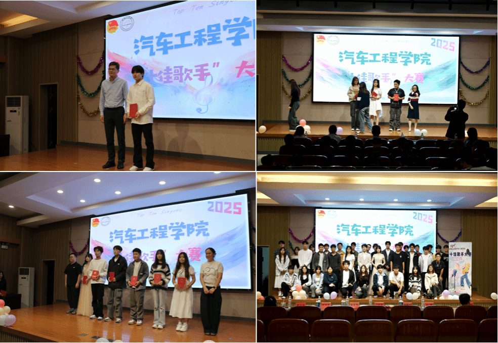 随着灯光渐亮,JDC舞社的开场舞瞬间点燃全场热情。16名选手依次登台,展现出了极强的音乐创造力与表现力,带来了丰富多样的歌曲元素。有选手用节奏感十足的 RAP,将青春里的热血与不羁表达得淋漓尽致,快速的语速与有力的咬字,让现场氛围再次升温;有选手选择英文歌曲,地道的发音与深情的演绎,展现出国际化的音乐视野;还有选手融入独特的戏腔,婉转悠扬的腔调与现代音乐完美融合,既传递出传统文化的韵味,又彰显了青春的创新精神;更有选手带来自作曲作品,旋律动人,歌词真挚,将自己的青春感悟与梦想追求融入其中,赢得了台下观众的阵阵喝彩。经过激烈角逐,冯家乐同学凭借极具穿透力的嗓音和卓越的舞台表现力,斩获“十佳歌手”比赛一等奖,钱易恺等3名同学获二等奖,周闽等6名同学获三等奖。比赛评委们为获奖选手颁发荣誉证书,并鼓励全体学子在追求专业知识的同时,保持对艺术与生活的热爱,用青春活力为校园文化注入更多精彩。