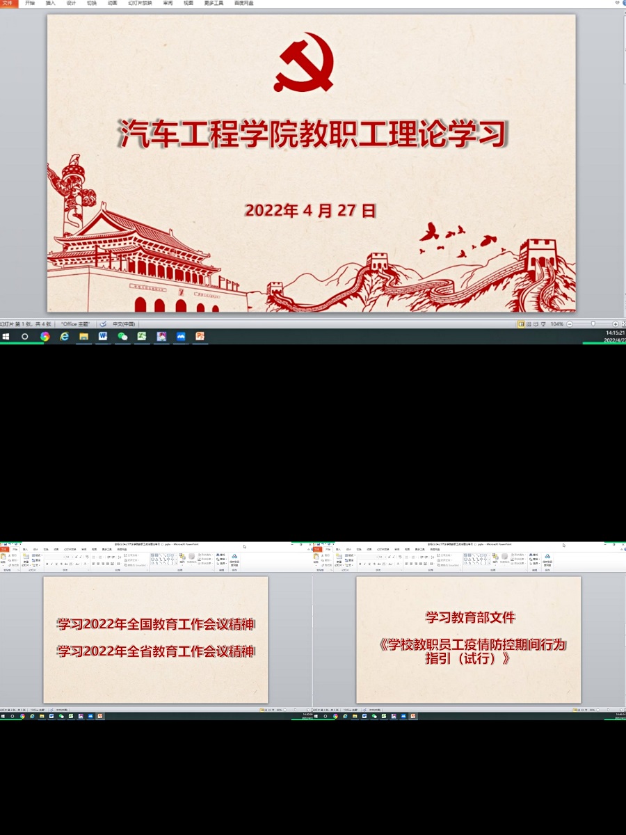 4月27日下午,公司开展线上教职工政治理论学习,本次学习内容为:2022年全国教育工作会议精神、2022年全省教育工作会议精神。公司党总支书记杨军主持会议。