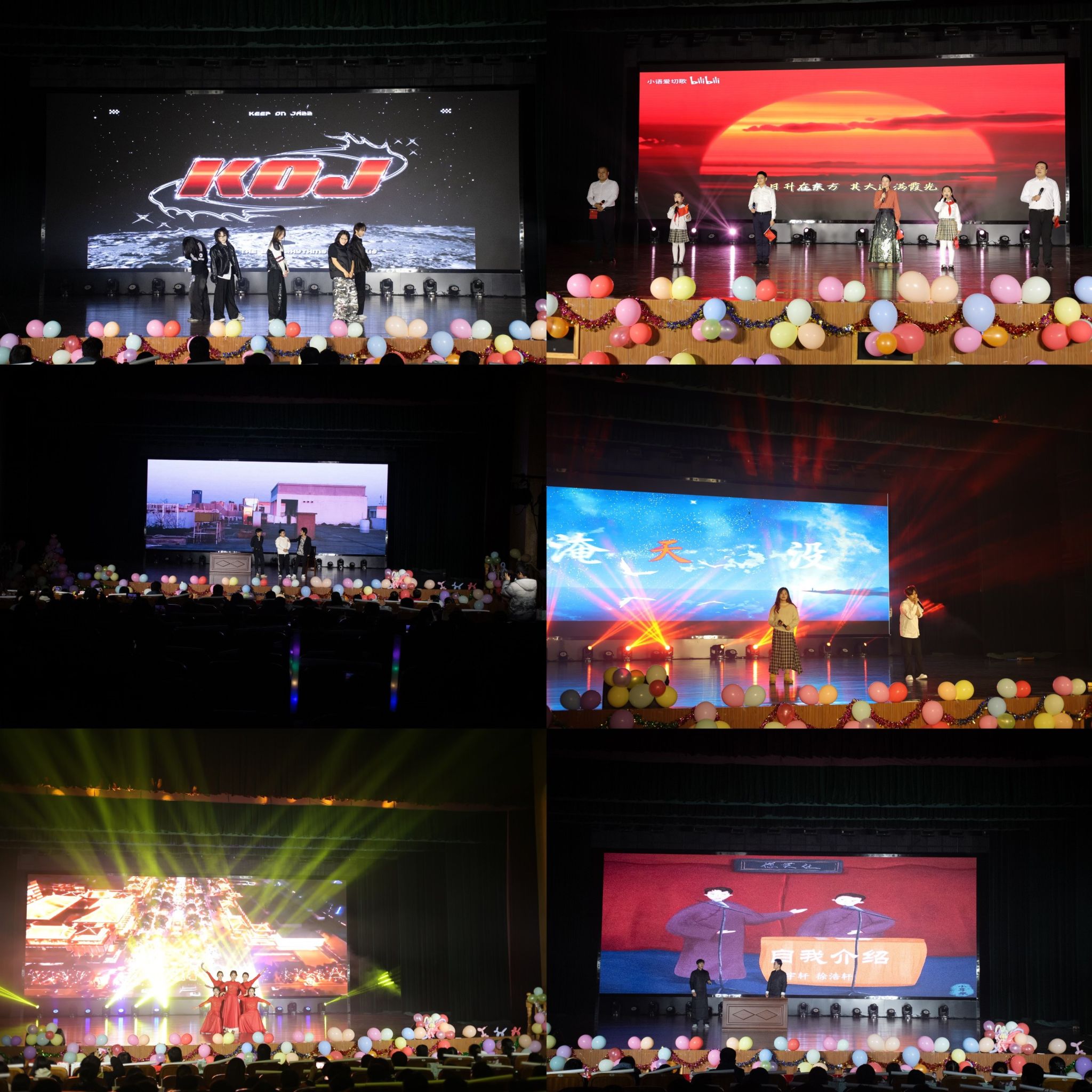 随后,一场融汇青春活力、师生情谊与家国情怀的文艺盛宴火热上演。晚会在KOJ舞社充满力量与节奏感的劲爆街舞中火热开场,瞬间点燃全场气氛。能源与动力工程系陈玉炜等五位教师代表倾情献唱《万疆》,用悠扬深情的歌声表达了对祖国山河的挚爱,展现了学院教师的多才多艺与深厚情怀。幽默诙谐的小品《减肥帮往事》以贴近生活的故事和精彩的表演,引得台下笑声连连,掌声不断。温暖动人的情歌对唱《你好,新时光》,则唱出了对崭新老员工活的美好憧憬与浪漫想象。
