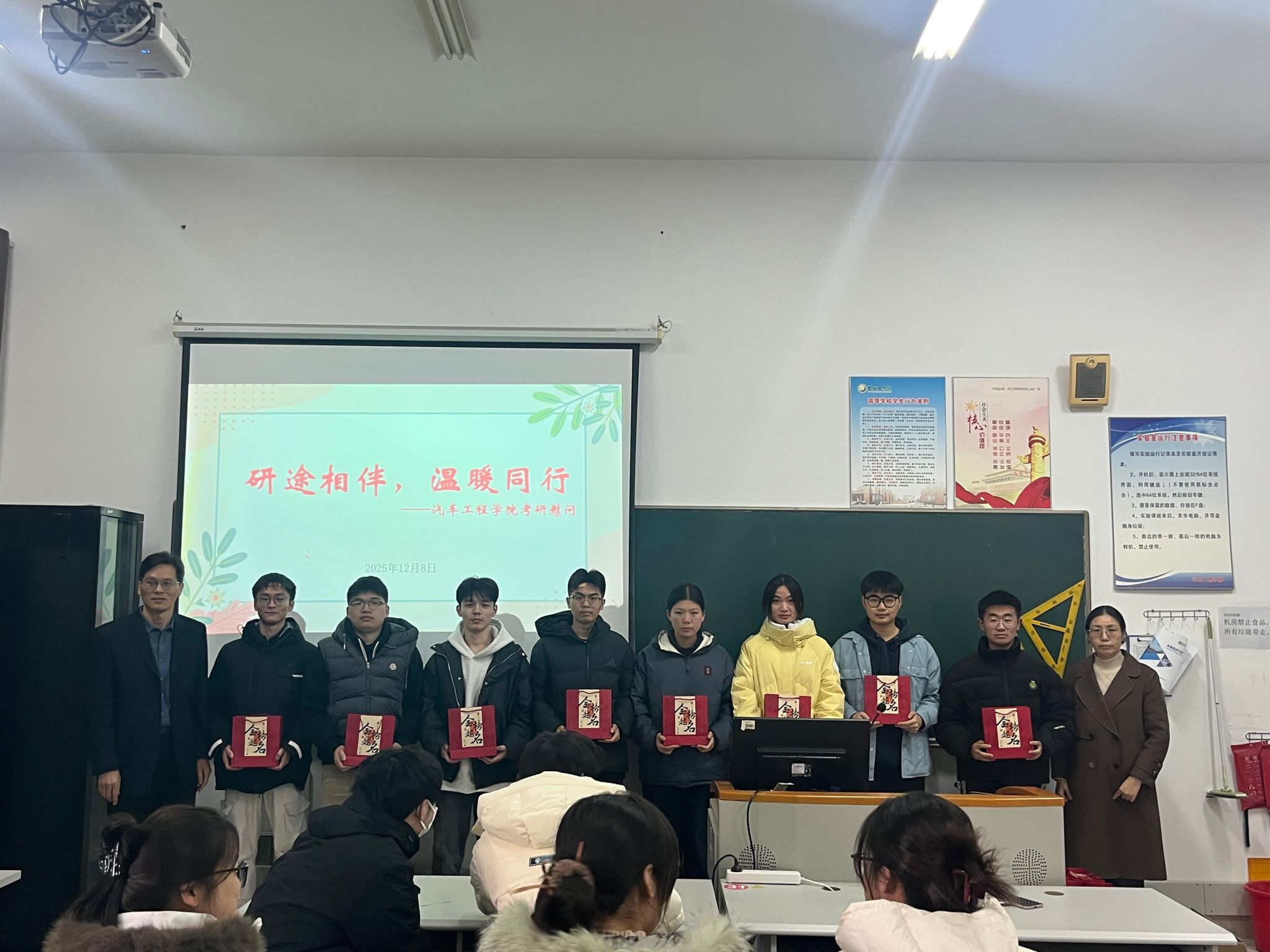 为鼓舞考研学子坚定信心、缓解备考压力,以最佳状态迎接挑战,12月8日下午,ladbrokes立博在南校区机械馆A414教室举办2026届考研学子慰问活动。公司党总支书记陈青、毕业班辅导员及考研员工代表参与活动,活动由公司党总支副书记丁德惠主持。
