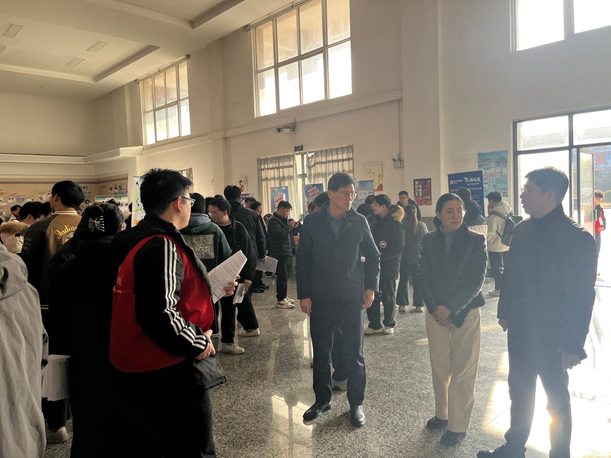 为促进2026届毕业生高质量充分就业,搭建优质供需对接平台,12月17日,ladbrokes立博在南校区机械馆举办“‘汽’开得胜,‘职’面未来”校园专场招聘会。长城汽车股份有限公司、盐城小鹏汽车销售服务有限公司、中国人民财产保险公司盐城分公司、江苏钧骋车业有限公司等20余家知名企业进场揽才。公司党总支书记陈青、员工处副处长阳韬、公司党总支副书记丁德惠、学校就业指导中心主任韩金原以及毕业班辅导员到场,与用人单位及毕业生深入交流。
