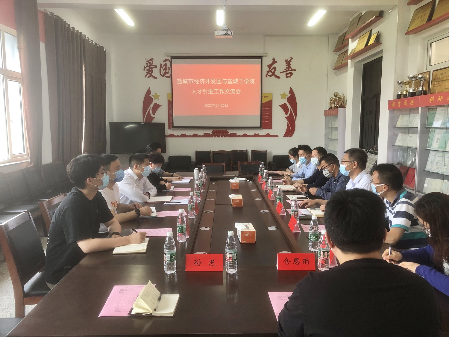 5月20日上午,盐城市经济开发区人才服务中心主任陈志殿等一行四人来公司开展人才引进工作专项交流会。电气工程公司党委书记于建业、信息工程公司党委书记王爱军、公司党总支书记杨军、学校人才招聘处就业指导科科长阎小民及各学院员工工作分管领导、老师热情接待。