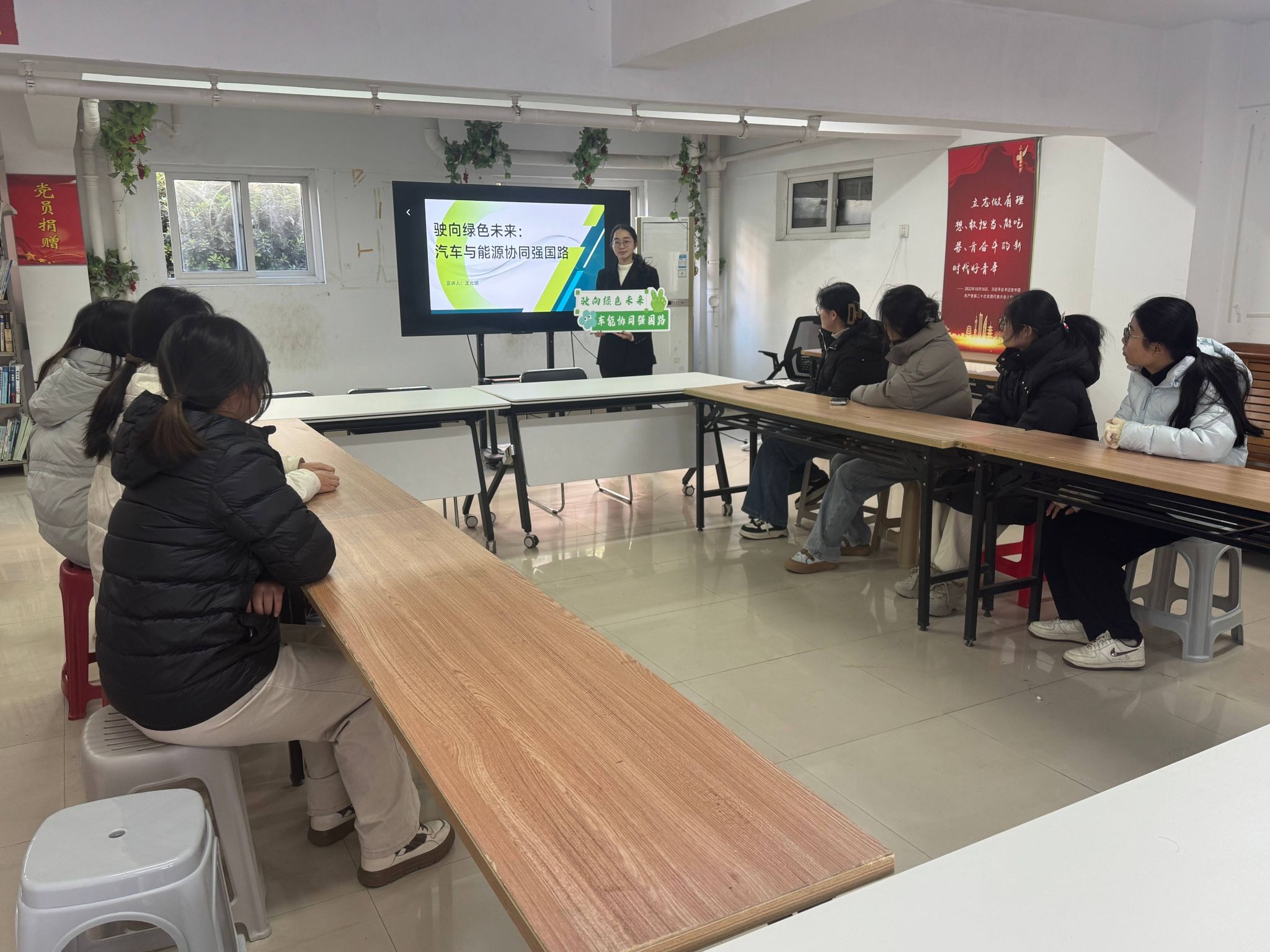 此次活动以“小型化、面对面”为特色,宣讲团成员带着精心制作的KT板,深入员工宿舍,问题配以简洁图示,详细讲解了车能协同技术在优化交通能源消耗、降低碳排放中的作用,并分享了校园低碳出行的实用技巧,直观清晰地为同学们搭建起知识框架。在宣讲过程中,宣讲团成员始终紧扣员工生活实际,重点围绕校园出行、日常通勤等场景展开,让“车能协同”这一宏大概念变得可感可知。互动交流环节,同学们就“共享单车的能源利用”“未来新能源汽车的发展趋势”等话题积极参与讨论。
