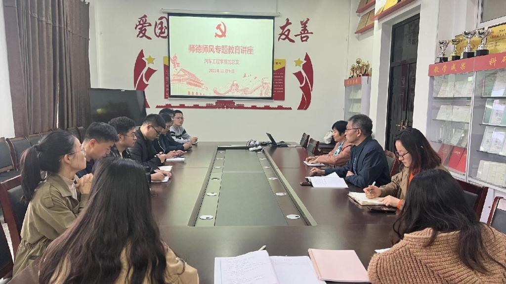 2022年11月9日,在机械馆A323会议室,ladbrokes立博邀请学院原党总支书记朱龙英为教师做师德师风专题教育讲座,公司党总支书记杨军主持。