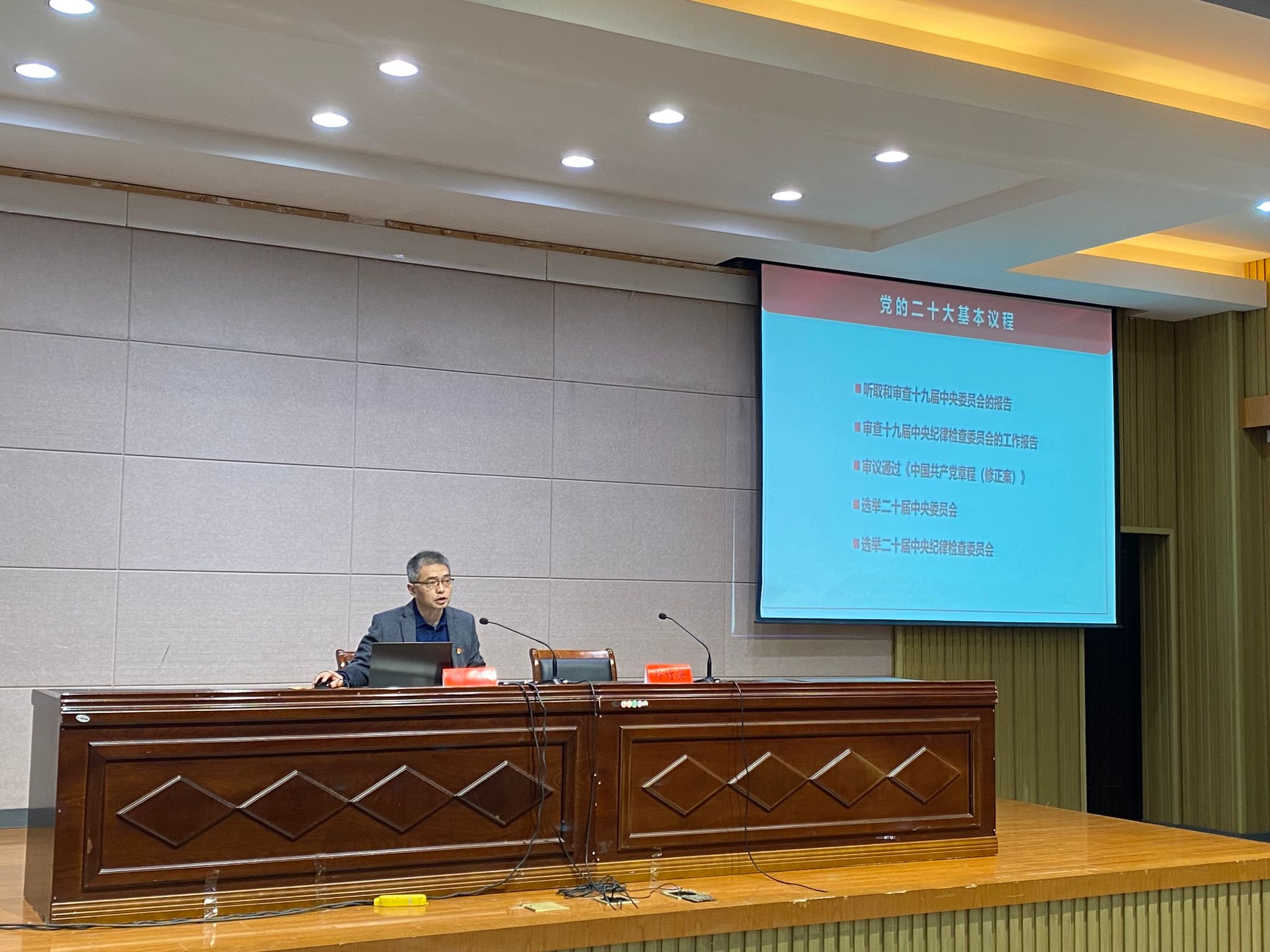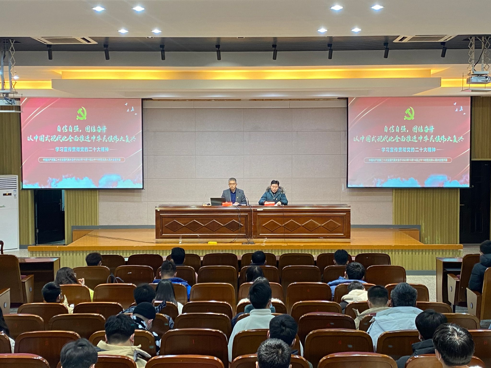 为深入学习宣传贯彻党的二十大精神,将党的二十大精神落到实处,按照公司党委安排部署,12月7日晚,ladbrokes立博在南校区机械馆报告厅举办党的二十大精神宣讲会,公司党总支书记杨军作题为《自信自强,团结奋斗,以中国式现代化全面推进中华民族伟大复兴》的报告。经理助理郑竹安主持宣讲会,全体员工党员参加。