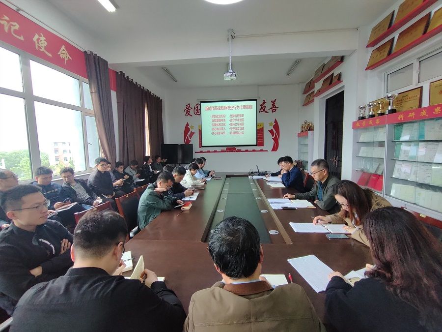 杨军带领大家学习了教育部等七部门印发的《关于加强和改进新时代师德师风建设的意见》并作总结发言,他强调,全体教师要以习近平新时代中国特色社会主义思想为指导,深入学习贯彻习近平总书记关于教育的重要论述和全国教育大会精神,自觉用“四个意识”导航,用“四个自信”强基,用“两个维护”铸魂。努力成为“四有”好老师,着力培养德智体美劳全面发展的社会主义建设者和接班人。