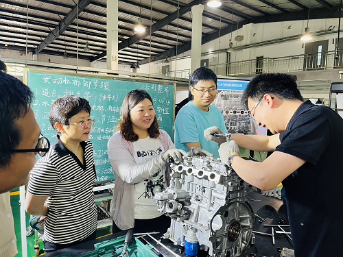 实验中心教师重点培训了发动机拆装、自动变速器拆装,采用基于目标教学理论的沉浸式实践教学法,结合理论讲解与教师动手操作,将理论知识融入实践,以达到巩固专业知识、培养专业技能、提升实践教学能力的目标。