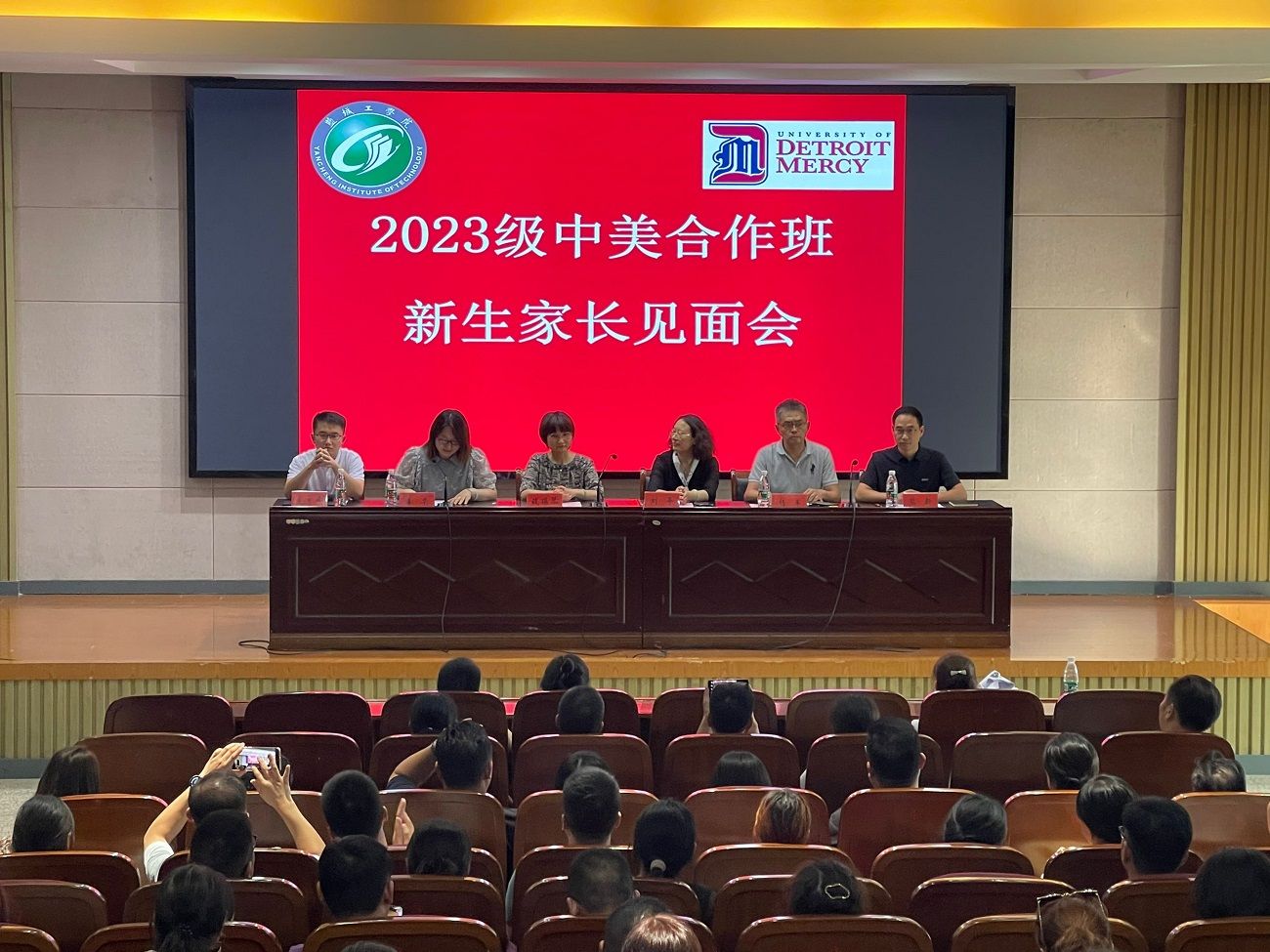 下午,2023级国合班新生家长见面会在机械馆报告厅举行,国合班的新生和新生家长都参与了此次会议。此次会议向员工和家长介绍了中美合作班与现代社会发展中密不可分的优势,讲述了美国底特律大学的相关情况,让同学们进一步理解国合班所面临的机遇与挑战