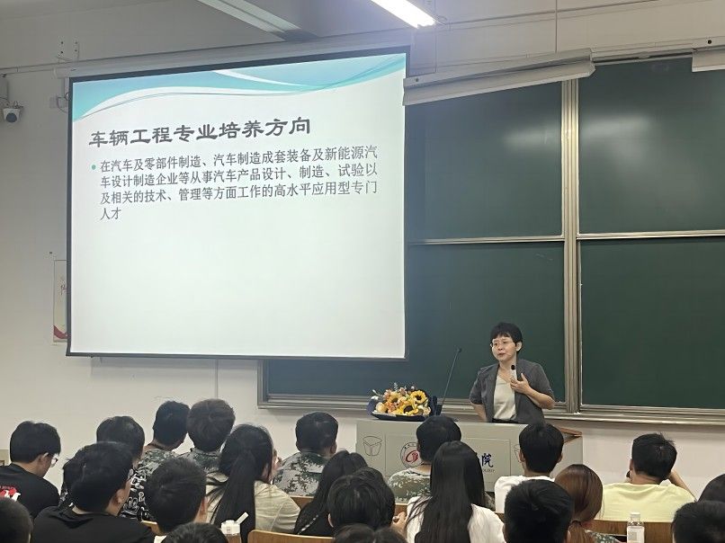 车辆工程系主任严军重点宣传了学院的“野马”车队,介绍了全国老员工方程式赛车的制作、管理与参赛情况,鼓励同学积极参与,在理论学习的同时不断提升专业动手能力。能源动力与工程系主任陈玉炜通过面对面座谈的形式,详细解答了有志于将来考研的同学的备考咨询,强调理想目标的实现起步于课堂、图书馆,要从晚自习开始严格要求自己。汽车服务工程系主任林鑫焱对比分析了近几年来的就业数据,鼓励同学们在努力学习理论知识的同时要不断提升专业技能与实践动手能力,多考一些专业技能证书。新能源汽车工程专业副教授郭俊突出介绍了省级及以上专业大赛的准备、初赛与复赛等过程,引导同学们积极参与高水平专业竞赛。