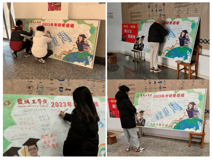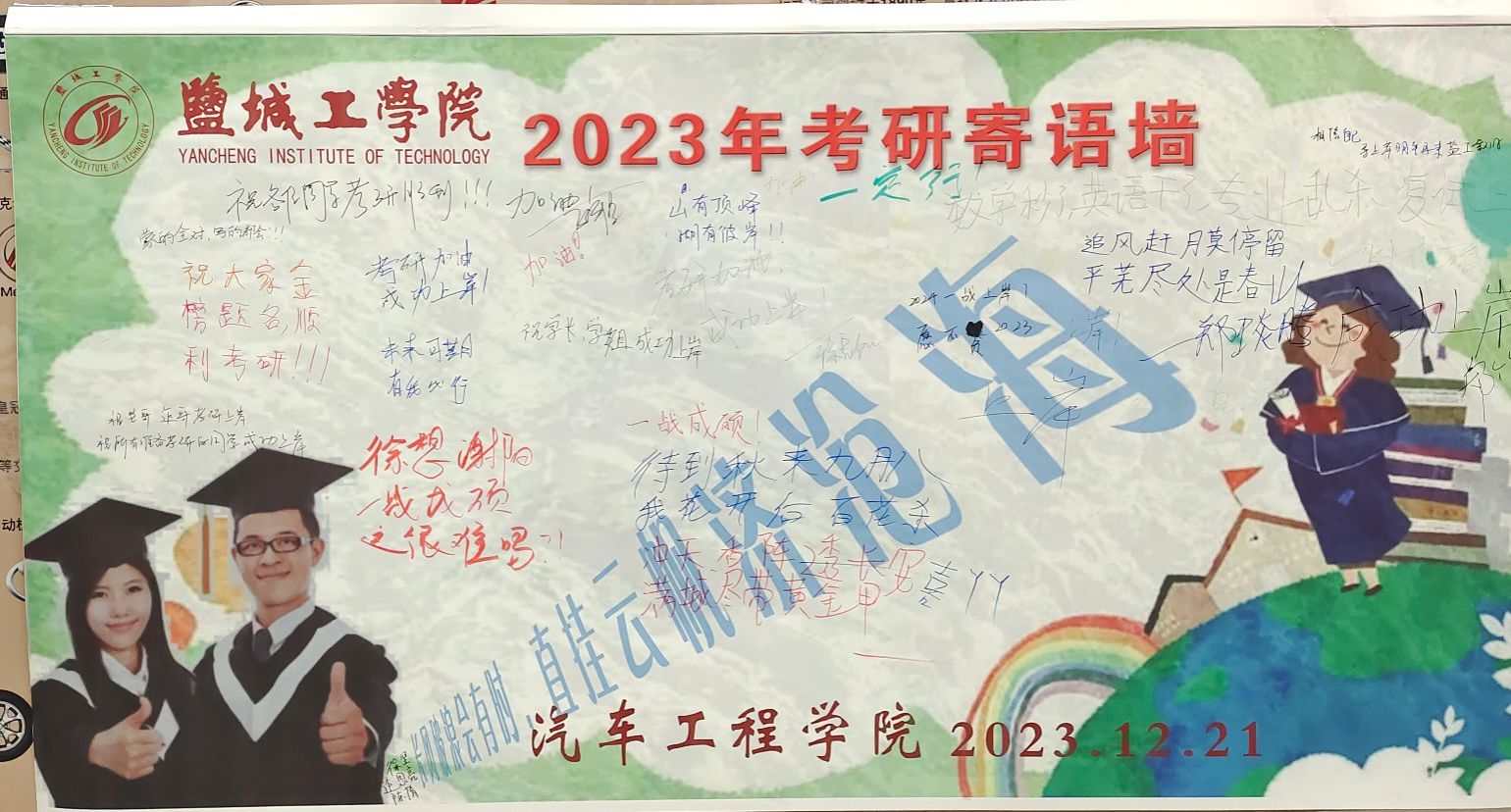 “山有顶峰,湖有彼岸”、“追风赶月莫停留,平芜尽处是春山”,一句句充满“汽”势的祝福跃然纸上,学妹学弟们热情的鼓励温暖了每一位考研学子的心。“一定行!”、“相信自己!”、“成功上岸!”,各位考研学子也在祝福墙上为自己加油打气,正在以昂扬的姿态奔向全新的未来。